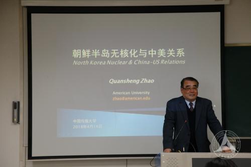 在互动提问环节,赵全胜教授与师生进行了认真的讨论,回答了 大家提出的多个问题。整场报告会持续两个小时,赵全胜教授从宏观和微观两个层面,为师生分析了朝鲜半岛无核化与中美关系的利益纠葛和争议问题,在师生中产生了良好的反响。